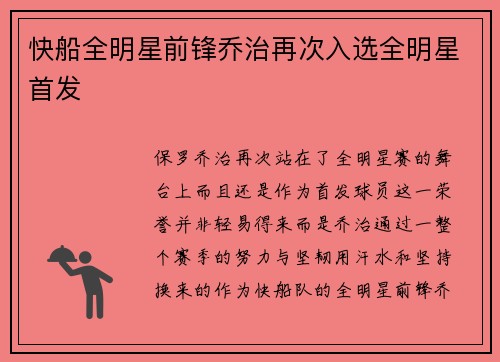 乔治再次入选全明星首发,不仅是他个人职业生涯的又一次辉煌,更是快船队整体实力与品牌影响力的象征。随着赛季的深入,乔治必将在未来的比赛中继续书写属于他的传奇,而他的全明星之旅也将成为快船队乃至NBA历史上的浓墨重彩的一笔。无论是对于快船队的球迷,还是整个篮球界,乔治的表现都值得我们去细细品味和铭记。
